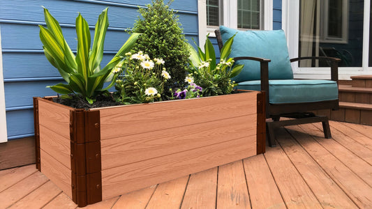 Check out nearly a dozen DIY composite raised garden beds made using recycled and sustainable materials. Our standard raised beds in sizes up to 64 square feet are a proven way to grow vegetables and flowers. If you want to have beautiful foliage on your patio, place raised garden planters along railings and walls. We also have double-tier beds and the famous Versailles Sunburst garden bed that will be a backyard star. Call us at (800) 914-9835 for assistance choosing a garden bed you'll love.