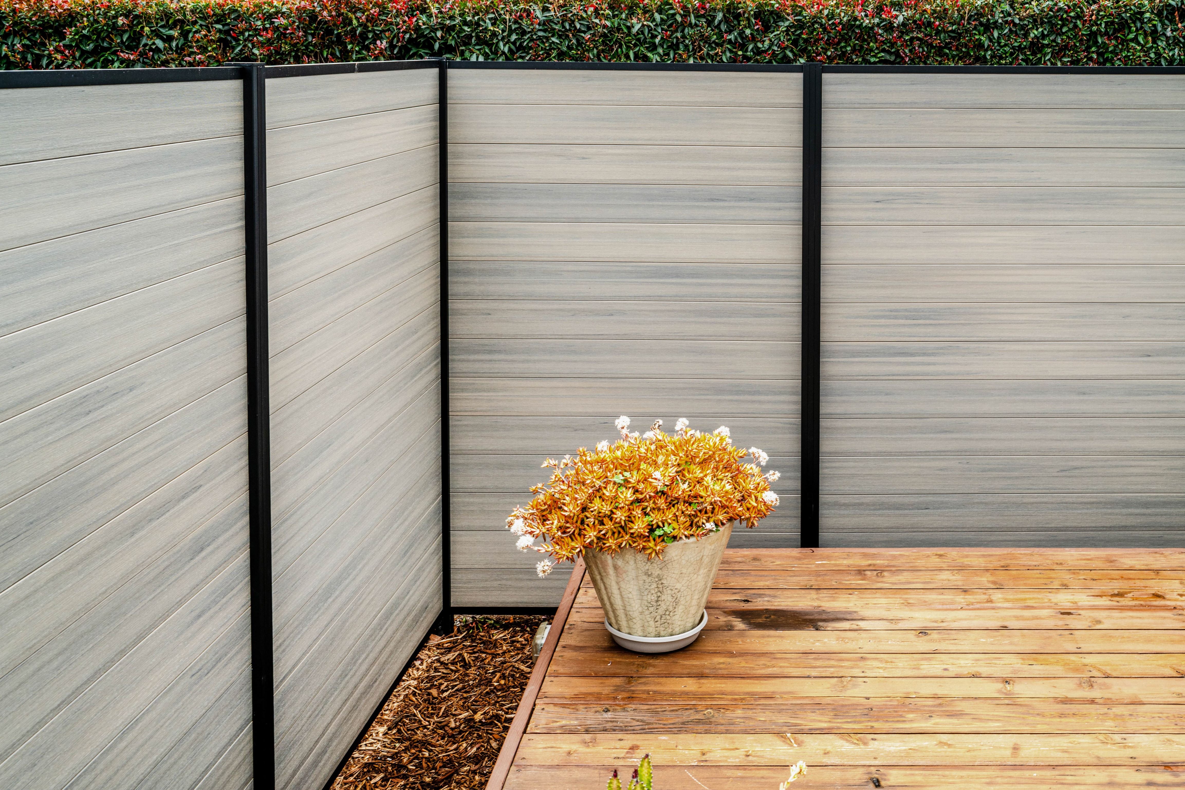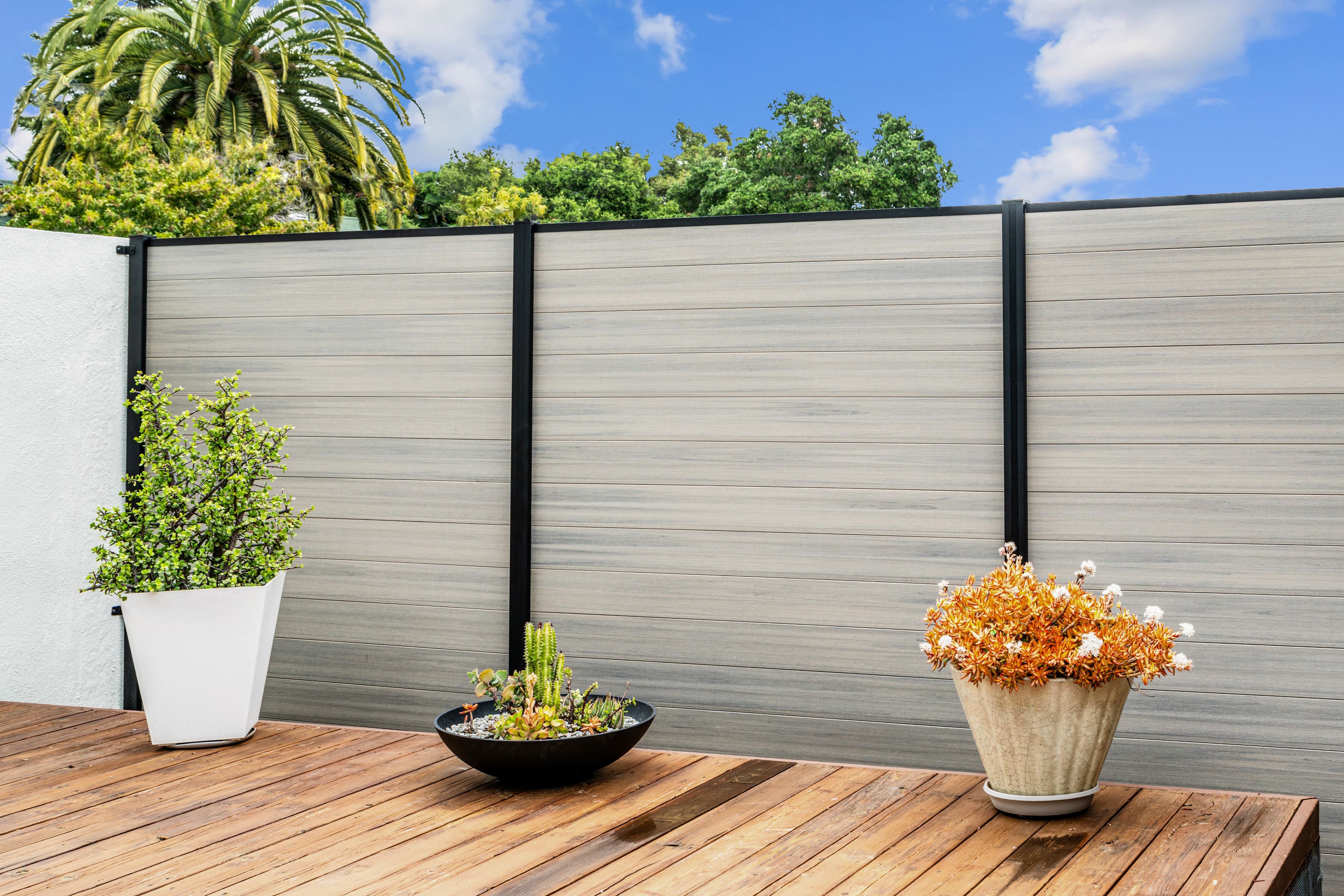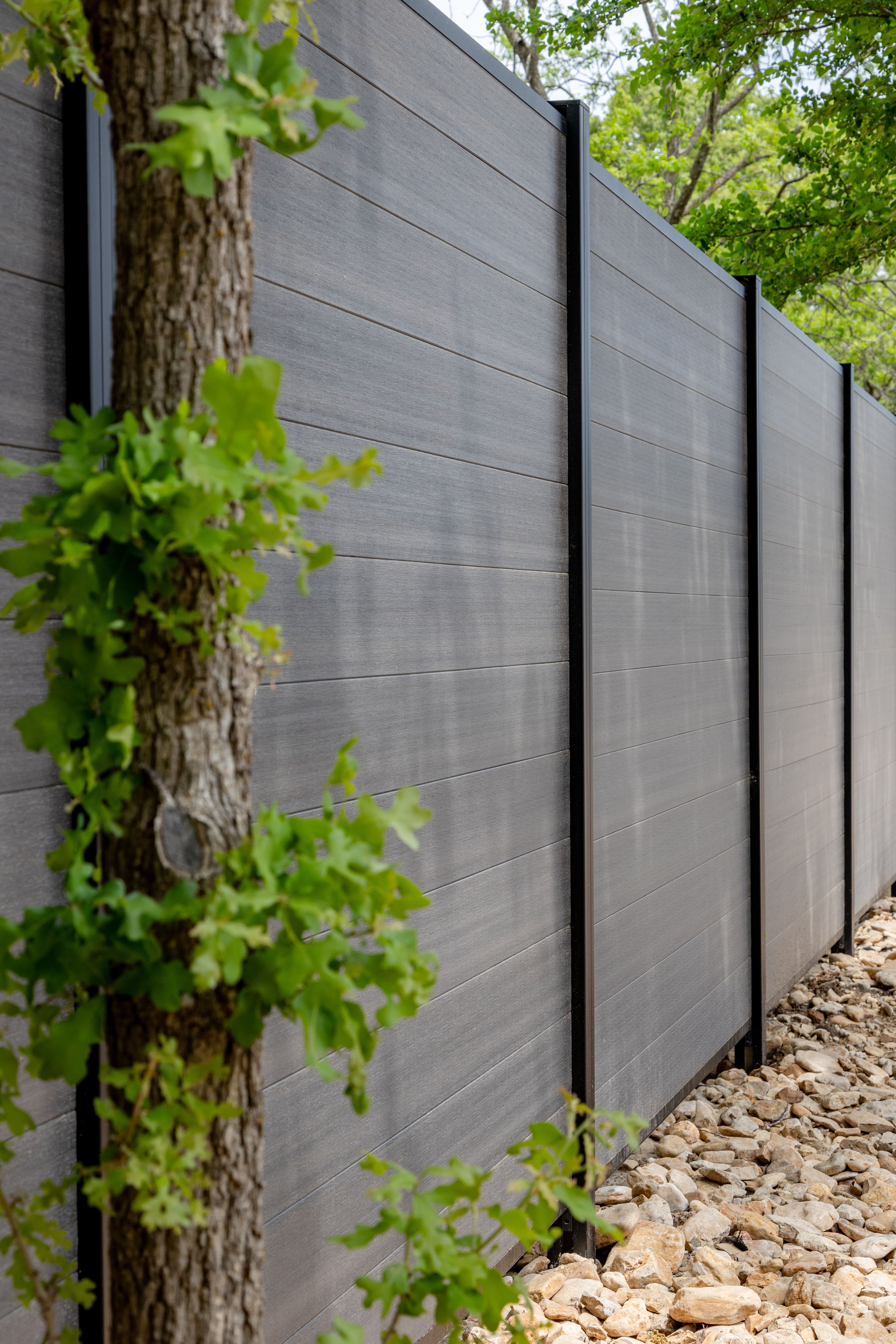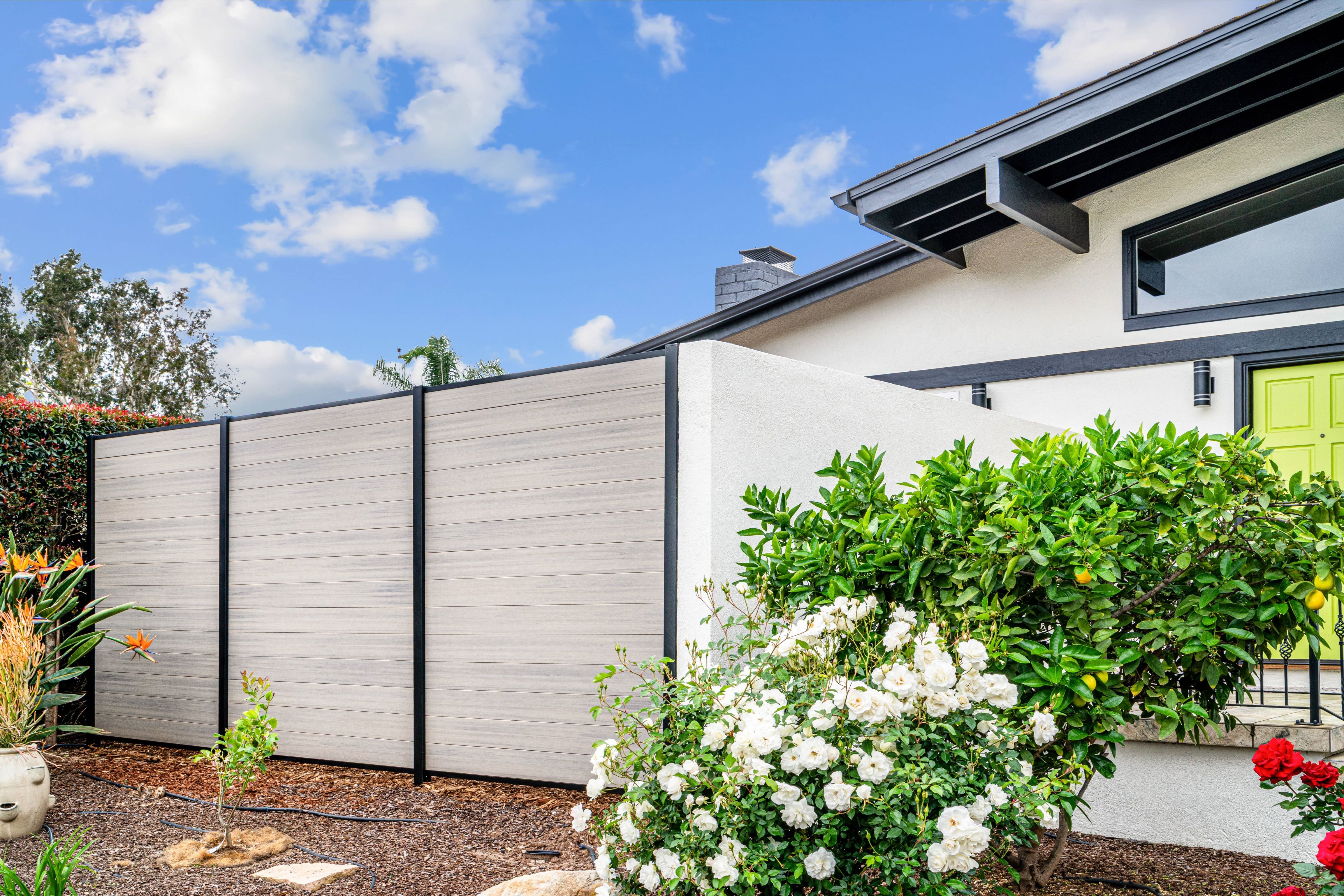 Our Valla Privacy Fence option is a great choice for those looking for enhanced privacy without compromising on style. The composite fence boards are designed to fit perfectly into the durable aluminum posts, creating a seamless frame. Each composite fence board features our proprietary 360 cap coating that will resist rot, fading, and bacteria while never requiring painting or staining!
