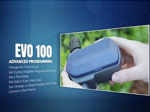 The EVO100 features a large, easy-to-read LCD screen and simple icon-based programming with weekly or cyclical programs, four start times per day, durations of up to six hours, program delay of up to 99 days, system off, manual operation, and a sensor wire connection to accept a rain sensor.